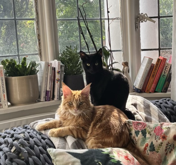 I have two cats, Oliver and Lucy. I love books — fiction, nonfiction, business, all of it. I write, I journal, I follow the moon. I'm drawn to the mystical and the intentional. I meditate. I set intentions. I believe there's more going on than most spreadsheets account for.